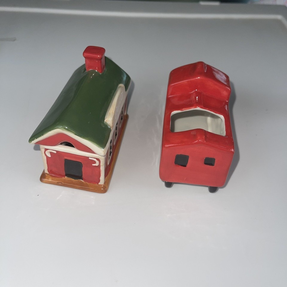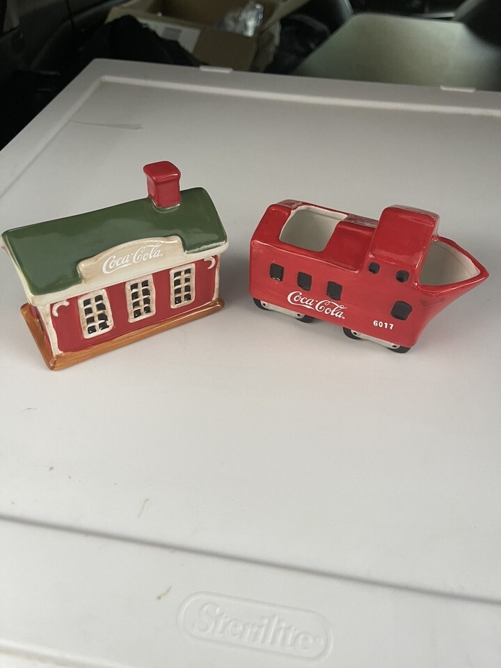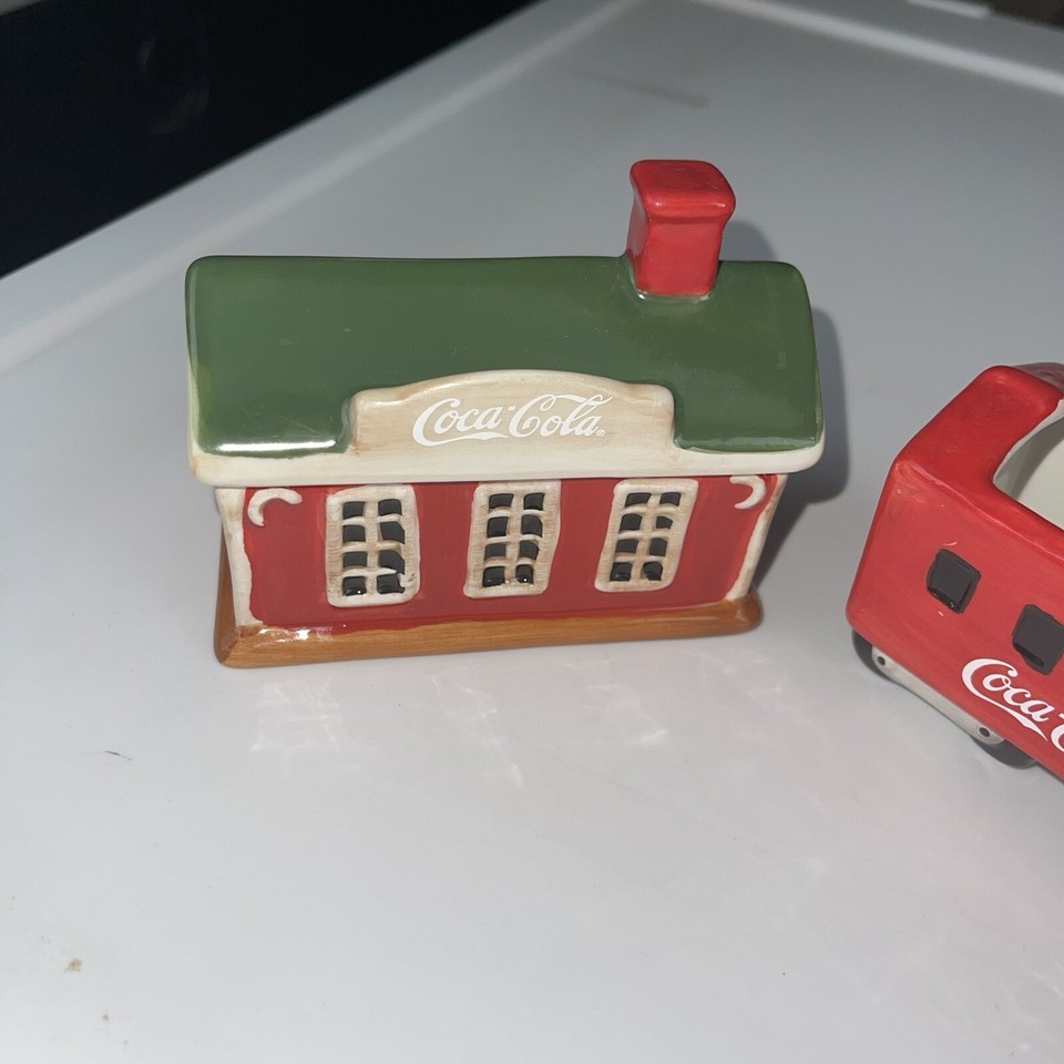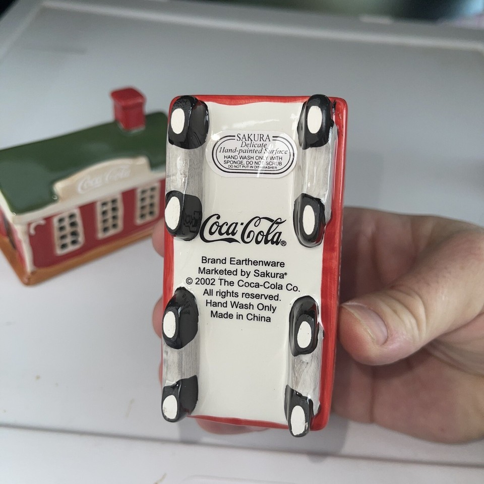 VINTAGE SAKURA 2002 Coca-Cola Hand Painted Cookie Jar School Bus Train Car Coke.