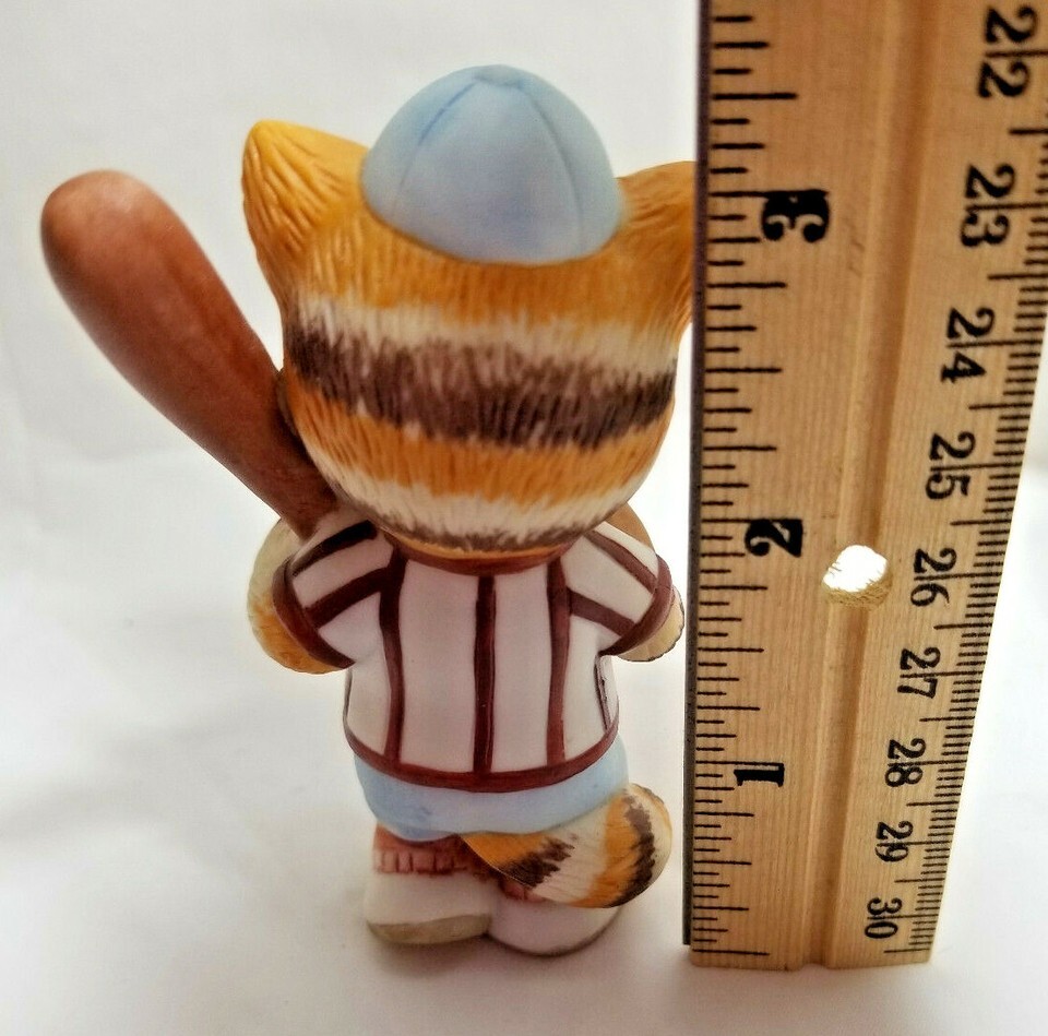 Calico Kitty Cat Porcelain Figurine Baseball Player 3" Tall