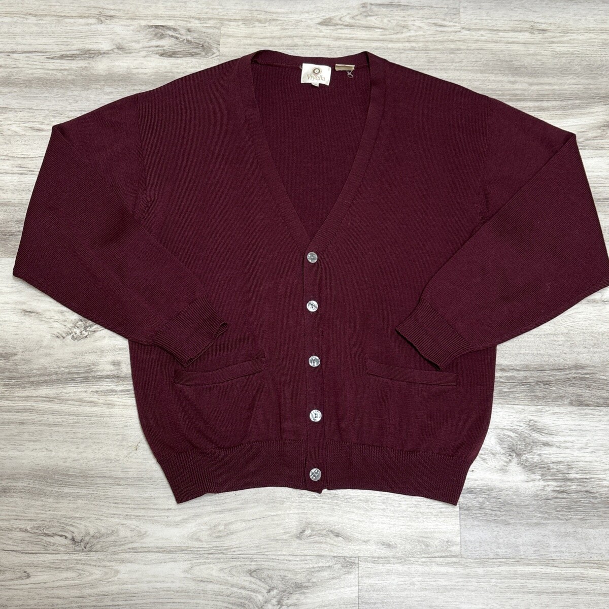 Vintage Viyella Merino Wool Sweater Mens L Oxblood Burgundy Grandpa Cardigan