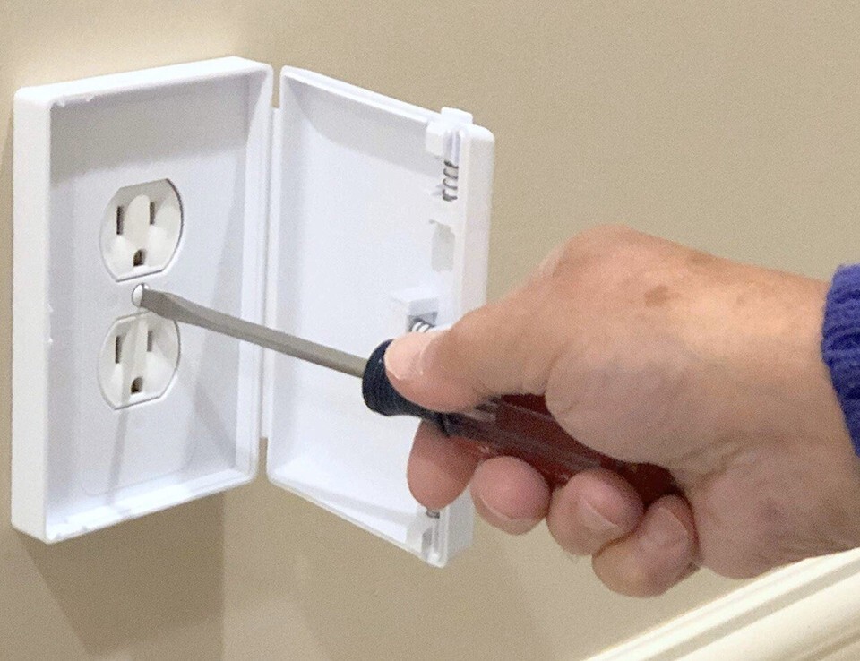 UNIQUE DESIGN ? Child resistant safety cover for existing traditional wall outlets. Extremely durable patented hinged door clicks closed. To open, engage all 3 points on the outside edges at the same time. Easy for parents ? not for young children who have not developed the dexterity to push all 3 buttons in sync. Unique to the baby electrical safety market, this patented product deters children, toddlers and pets. Praised by parents of young children as well as those on the Autism Spectrum and persons with intellectual and behavioral challenges.