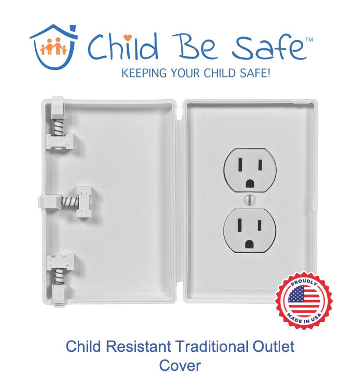 Child Be Safe - MADE IN USA - (WHITE COLOR) Electrical Wall Outlet (Traditional Outlet Design) protects a baby, child, special needs child, toddler and pet from harm?s way giving parents and pet owners peace of mind. Child Be Safe?s electrical safety cover prevents access to outlets in home, business, school, care, and medical settings.