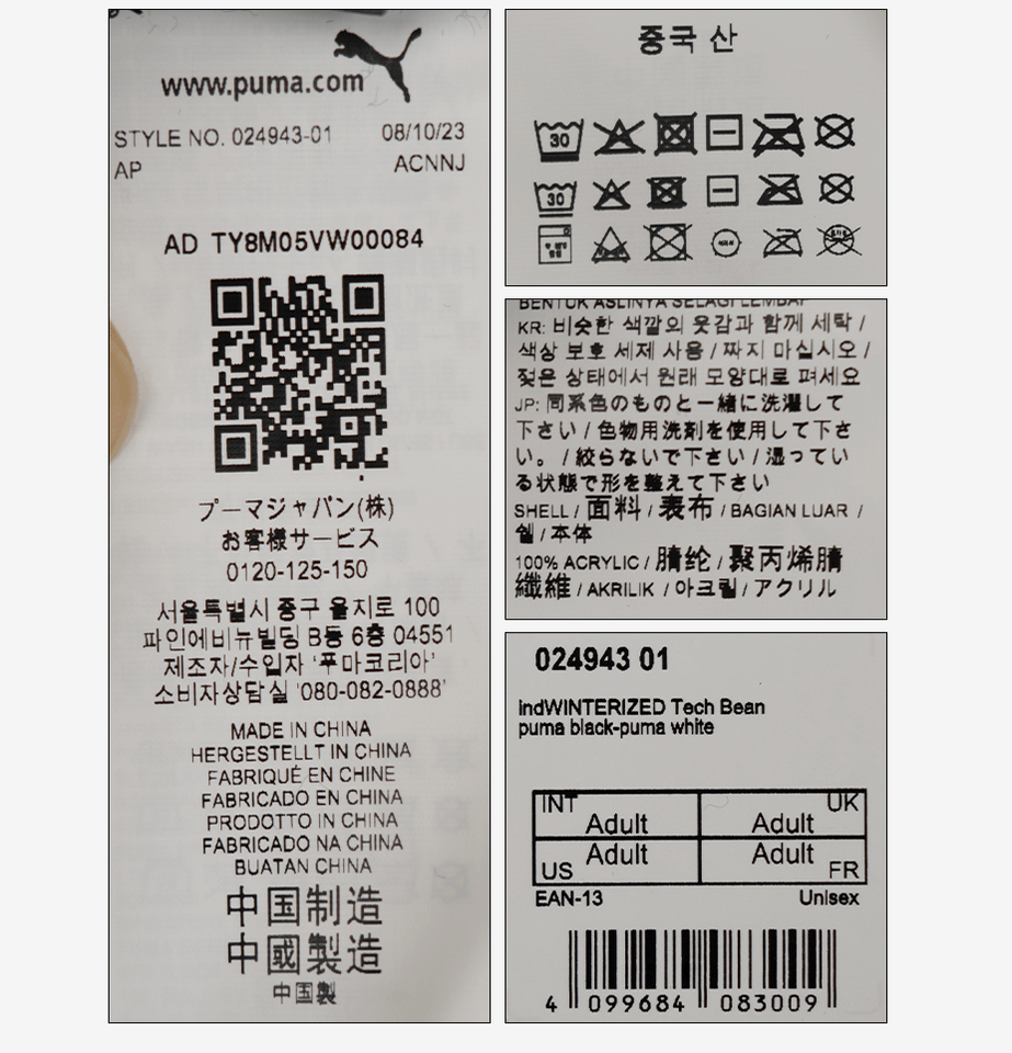 Main Features ---Brand : Puma ---Gender : Unisex Adults ---MPN : 02494301 ---Material : Acrylic 100% ---Color : Black ---Size : One Size
