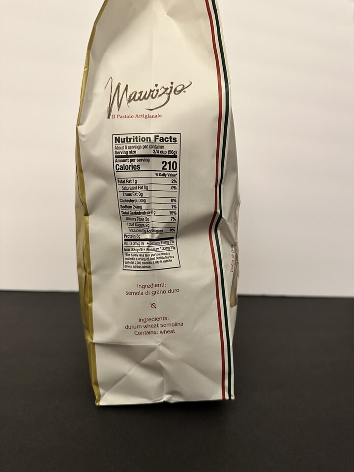 The Maurizio Brand Pappardelle Pasta is a gourmet 17.6 oz (3 paks) import from Italy. Made with organic, dairy-free, egg-free, low-fat, and low-sodium ingredients, this pasta is perfect for those with dietary restrictions. With a serving size of 56g and 8 servings in total, this pasta is a delicious and healthy option for any meal. Made with durum wheat, this pasta has a rich and satisfying texture that is sure to impress any foodie.