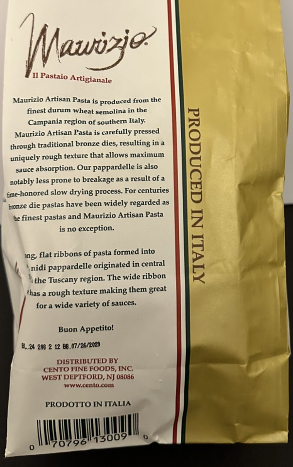 Pappardelle Pasta Imported from Italy Maurizio Brand Gourmet 17.6 oz (3 pak)