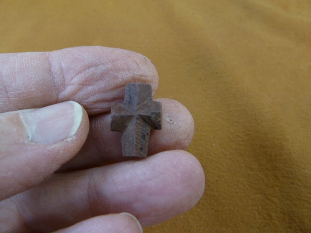 We also drill these and wire as pendants after filing away the softer stone to show the cross more clearly (see our store).