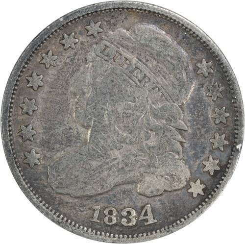 1834 Bust Half Dime in Very Good VG Condition, Light Gray Color, Bold "LIBERTY"
