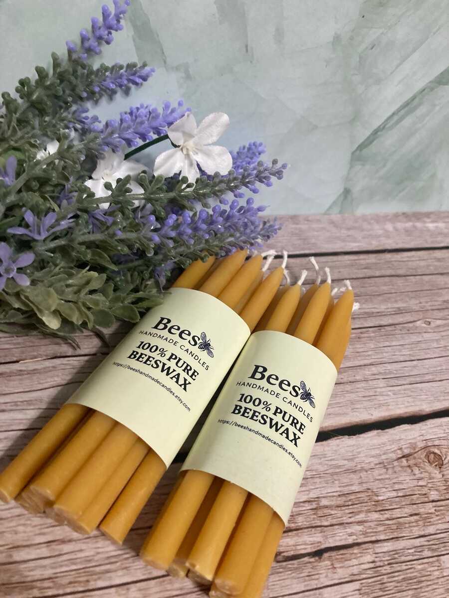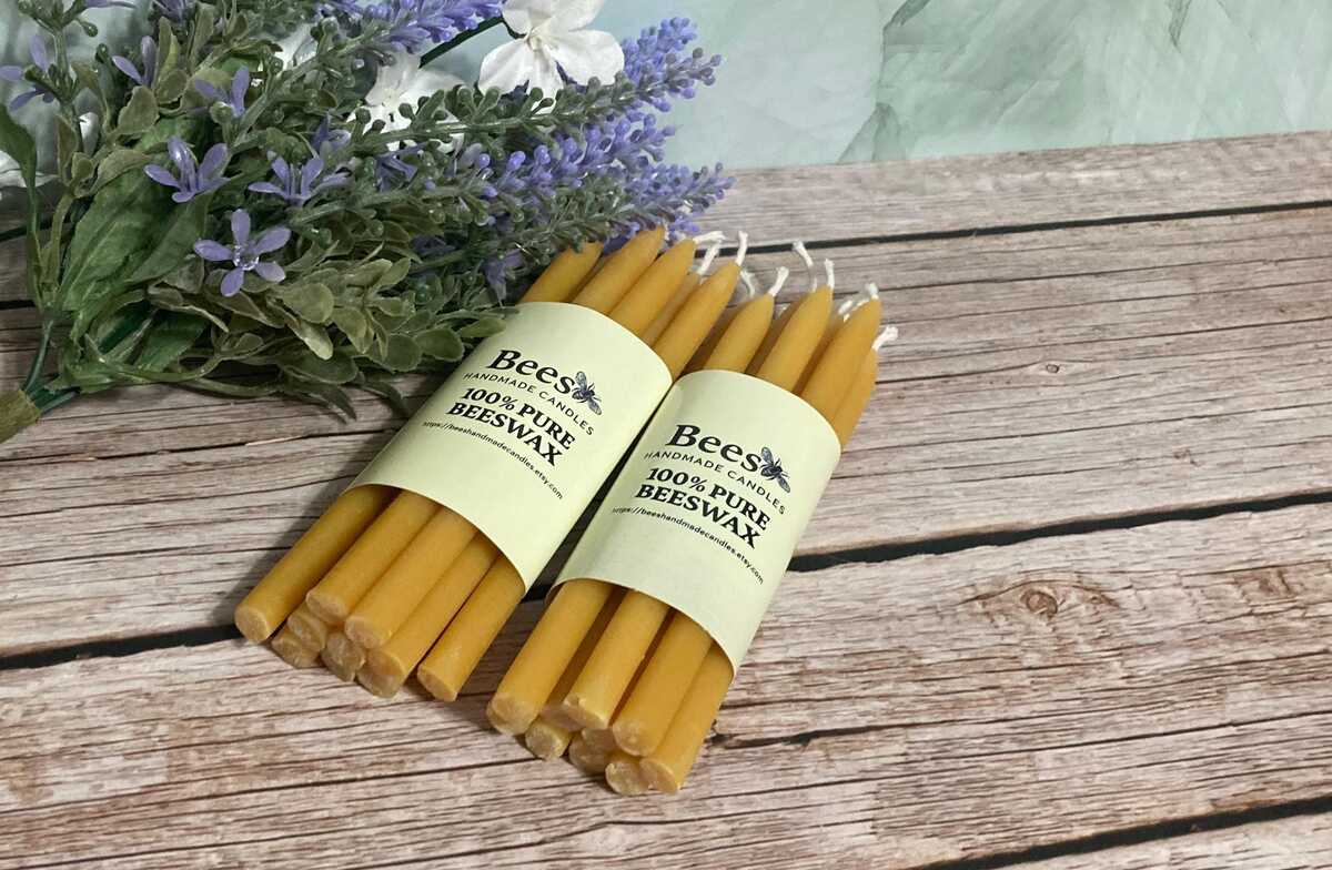 10-Pack 100% Pure Beeswax Birthday Candles – Handmade, 5” Long, Non-Toxic & Drip
