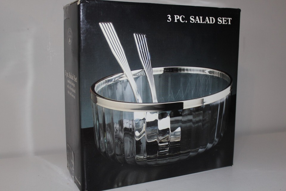 Paul Revere Silversmiths 3 Piece Silver Plate And Glass Bowl And Serving Set