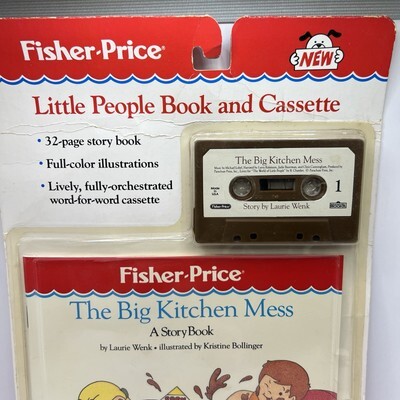 Enjoy classic storytime with this Fisher-Price Little People book and cassette set titled The Big Kitchen Mess from 1987. This vintage audio story includes the original illustrated book and matching cassette tape. A nostalgic collectible for Little People fans or vintage toy collectors. Packaging shows light shelf wear consistent with age, while contents appear unused. Ideal for display or collecting. Please review all photos for condition details and message with any questions.