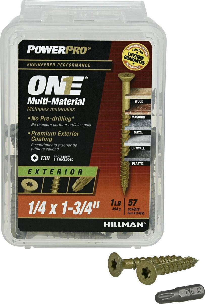 PowerPro 116855 Bronze Flat-Head ONE Multi-Material Screws (1/4" x 1-3/4")