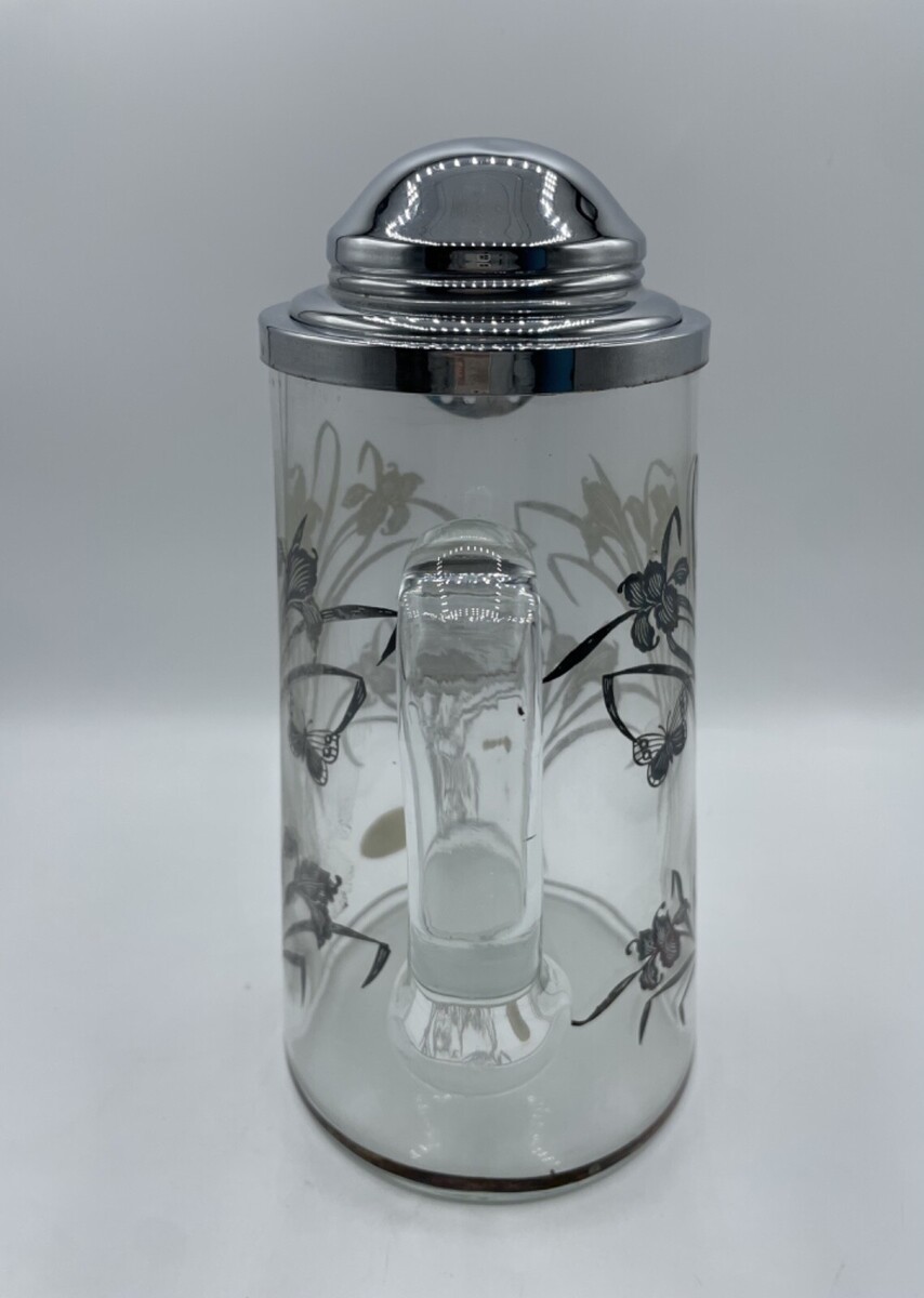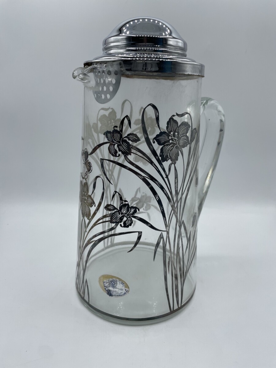 Vintage Sterling Silver Overlay Glass Pitcher Flowers Floral Bs310