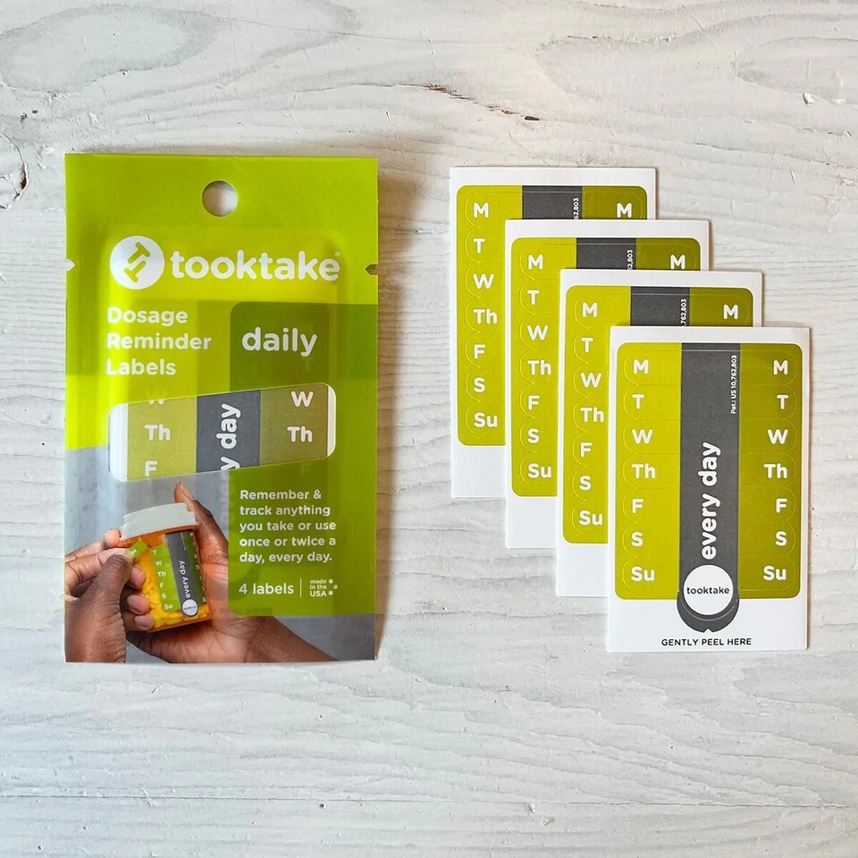Tooktake Daily labels work on all forms of medication and supplements. Liquids, lotions, sprays, creams, drops, herbs, sprays, gummies, and of course pills.