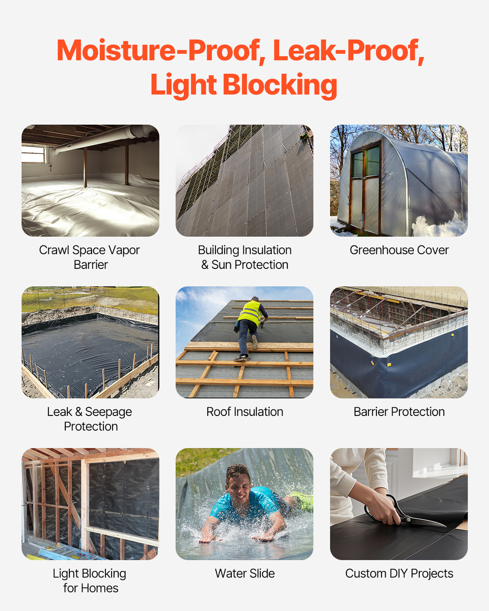 Wide Range of Applications: This plastic sheeting is ideal for weed control, barrier protection, thermal insulation, and seepage resistance, and light-blocking entertainment setups. It serves well in both agricultural and construction settings.