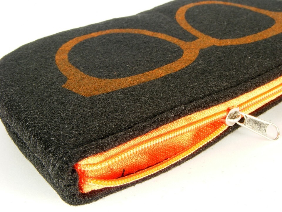 NEW Soft Strong Felt BLACK /ORANGE Case with Zipper for all Sunglasses / Eyeglasses.