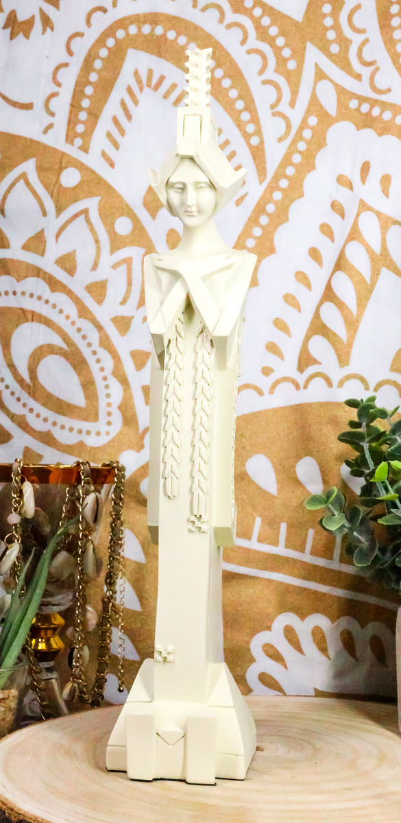 ? This Frank Lloyd Wright Architecture For Midway Gardens Sprite With Crossed Arms Statue is made of polyresin, individually hand painted and polished.
