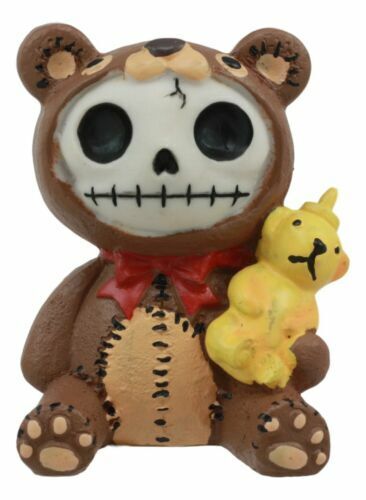 Furrybones Voodoo Teddy Bear With Honey Bear Bottle Skeleton Statue 2.5"Tall