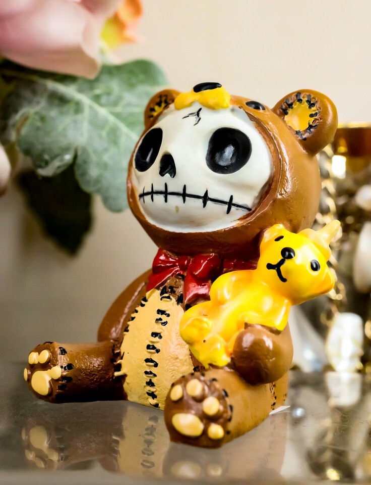 Ebros Furrybones Voodoo Teddy Bear With Honey Bear Bottle Skeleton Statue 2.5"Tall
