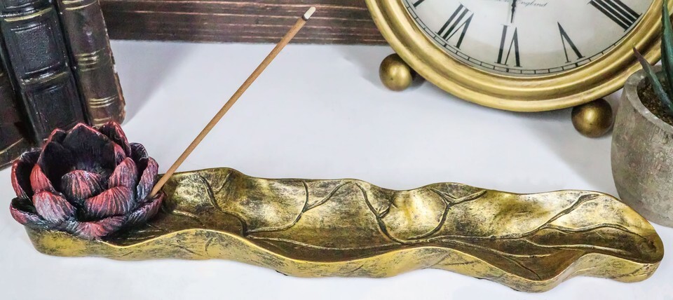 Ebros Lotus Flower Stick Incense Holder Burner Buddha Meditation Fengshui 10" Long