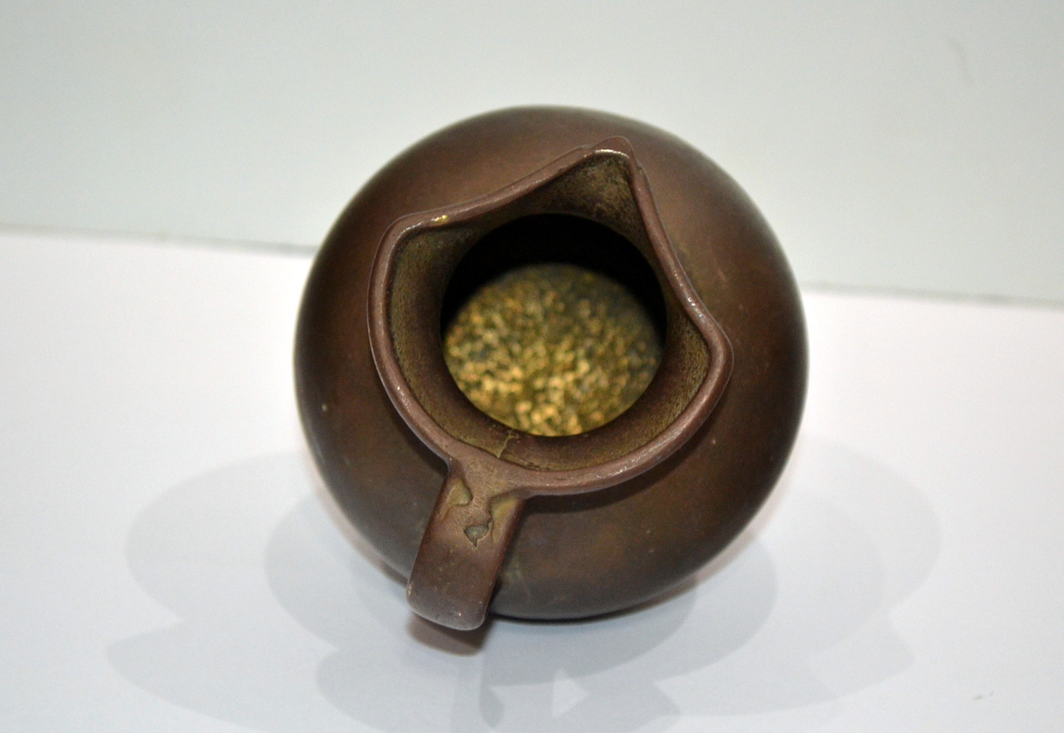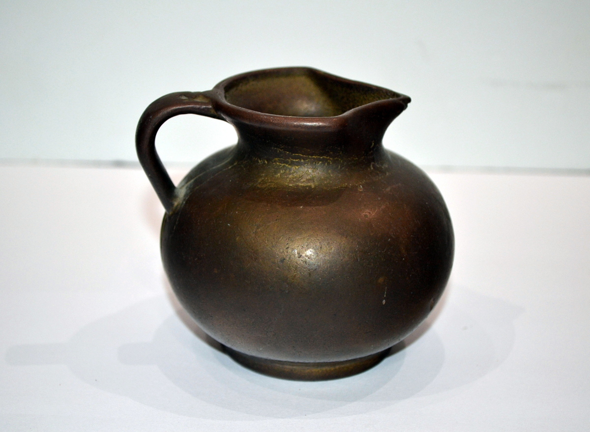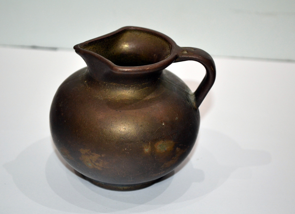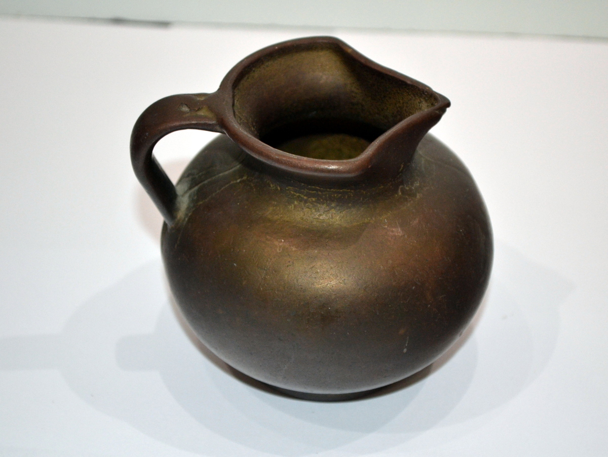 I don’t know this creamer’s age but it has excellent vintage patina. There are no nicks, dents, scratches, cracks or a maker’s name. It’s a beautiful dark brass color.