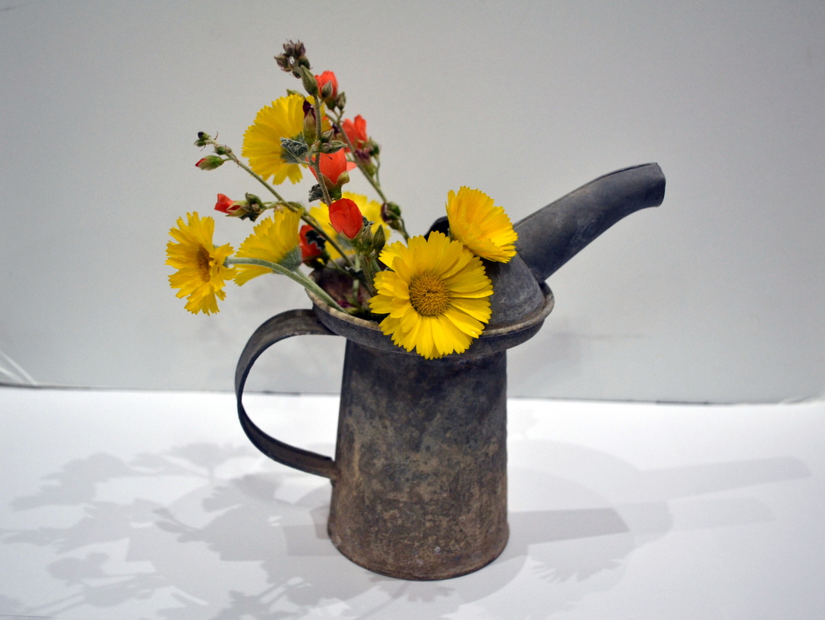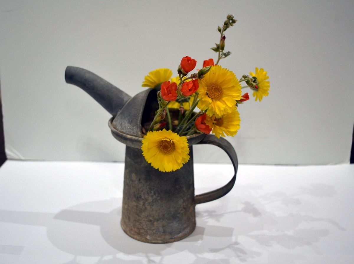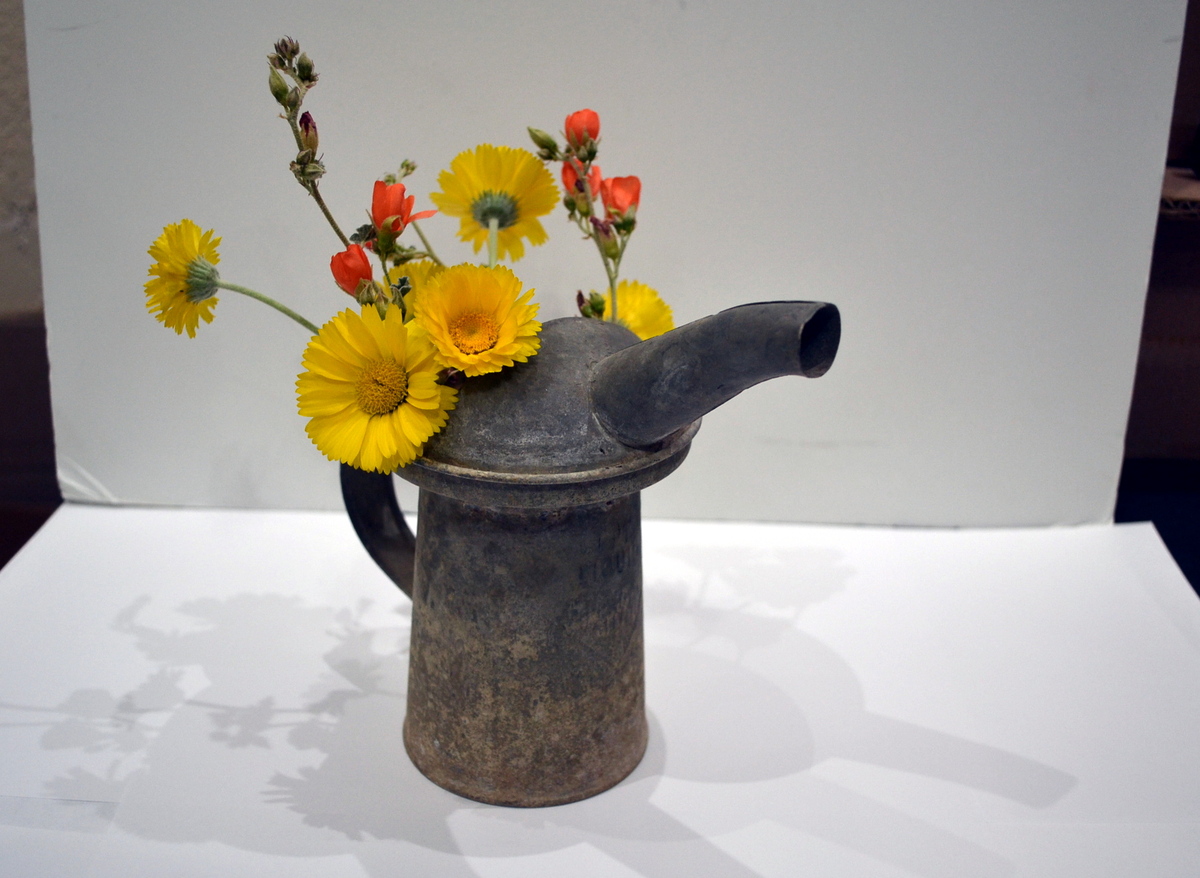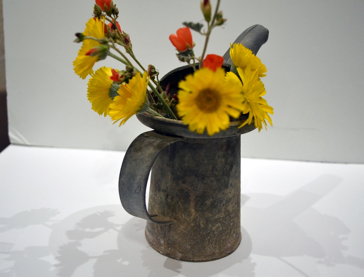 This type of can was versatile then, and can be now for you as you think about using it in a flower arrangement, utensil holder, even for pens and pencils, artist brushes and more…. or with its unique patina it makes an excellent display piece as is.