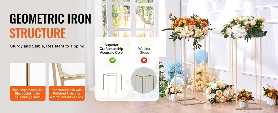 Rectangular Column Design: Elegant and simple, with smooth, clean lines that exude modern beauty. Its sturdy structure supports up to 33 lbs, easily holding a variety of floral decorations and adding a romantic atmosphere to your wedding