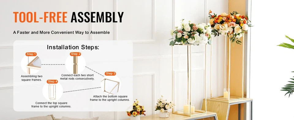 Setup Is a Breeze: This flower stand features a straight installation without tools, making assembly simple and quick without the need for additional tools. Save time and effort, allowing even non-professionals to set up the wedding flower stand with ease