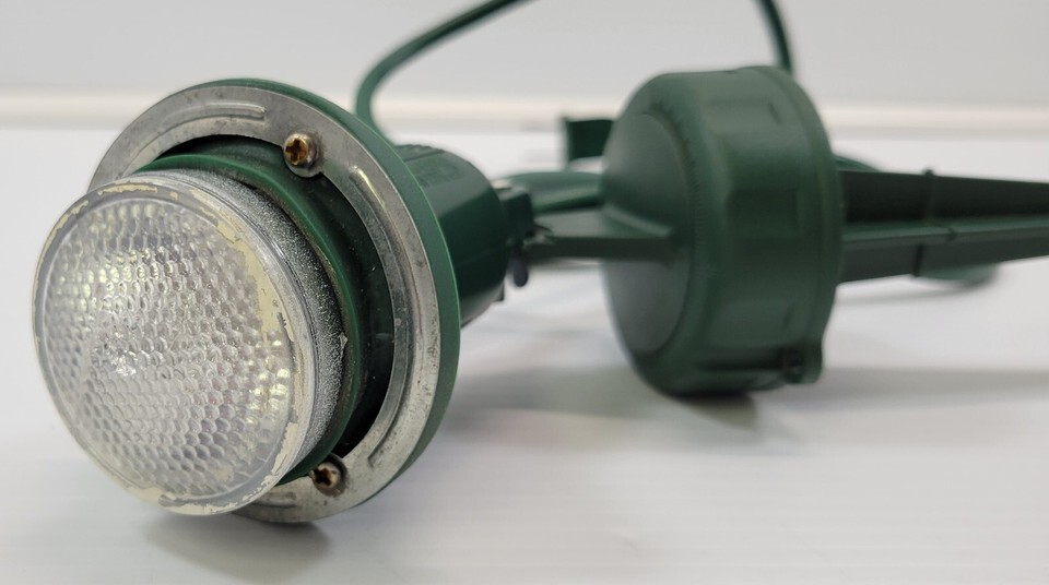 In overall good used condition. Lightbulb is included but used with some paint stains on lens.
