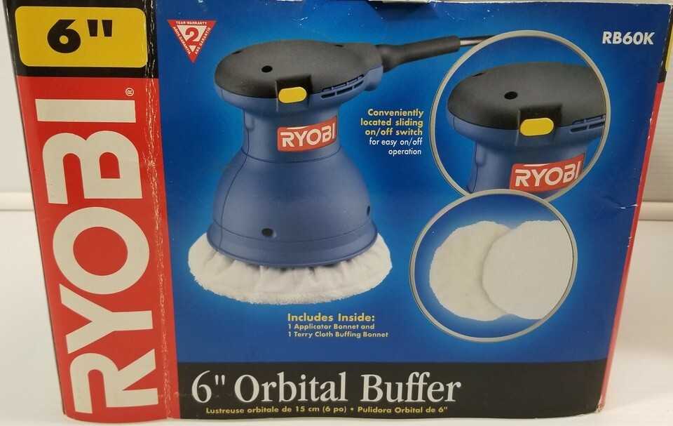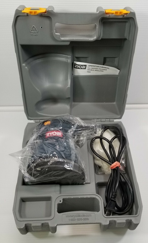 V) Ryobi RB60K 6" Orbital Buffer with Case and Bonnets 120V Corded Electrical