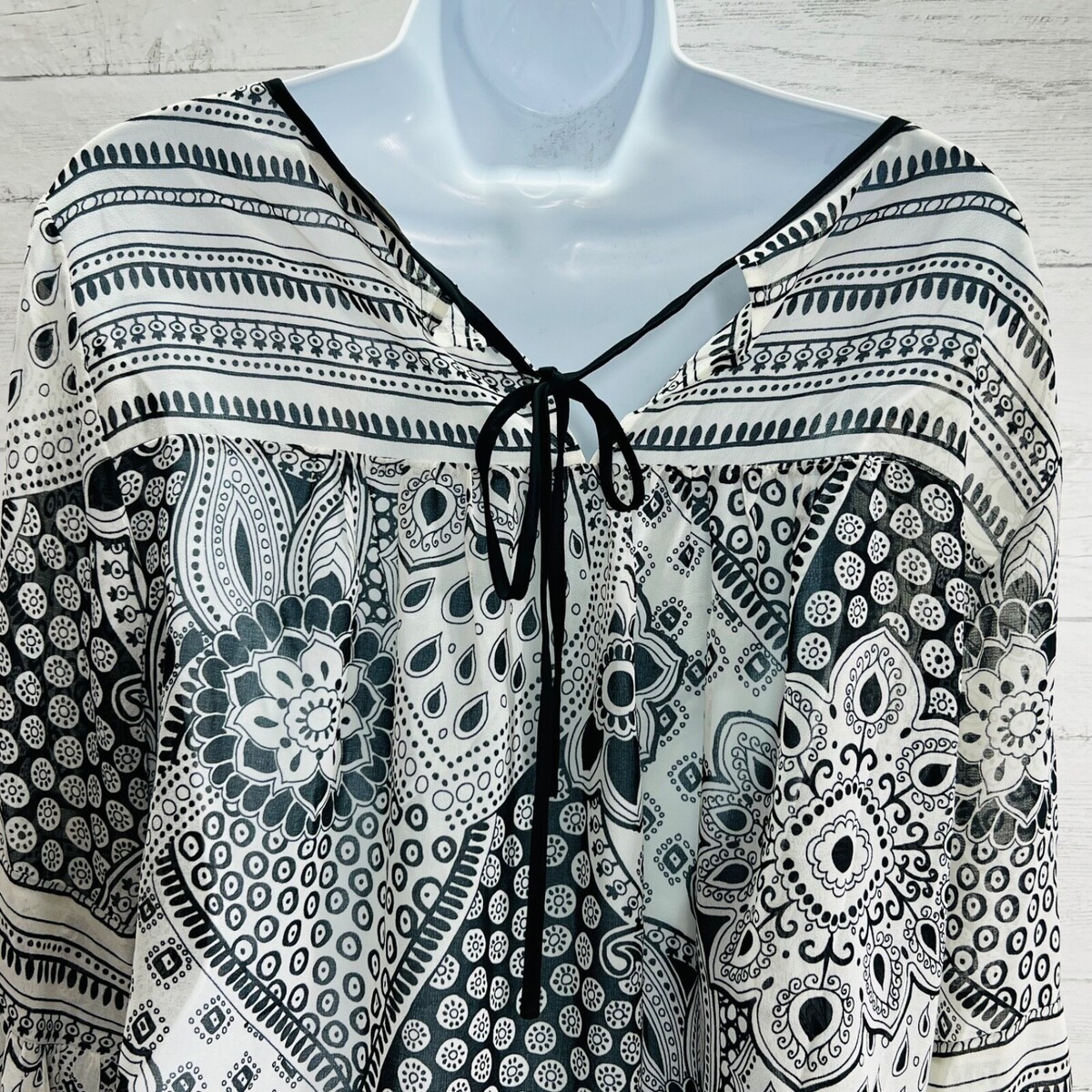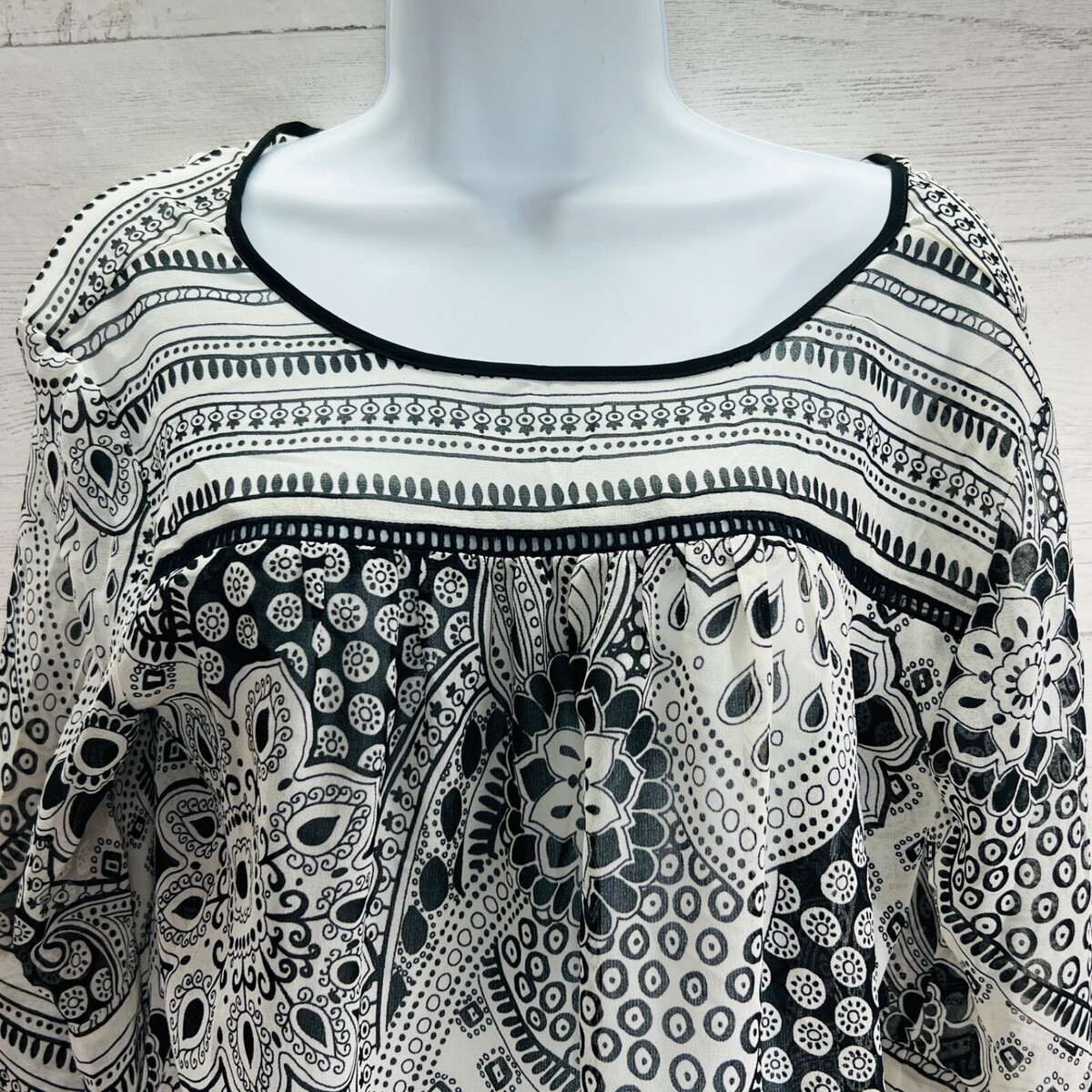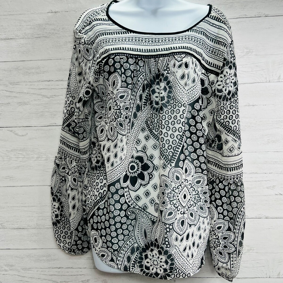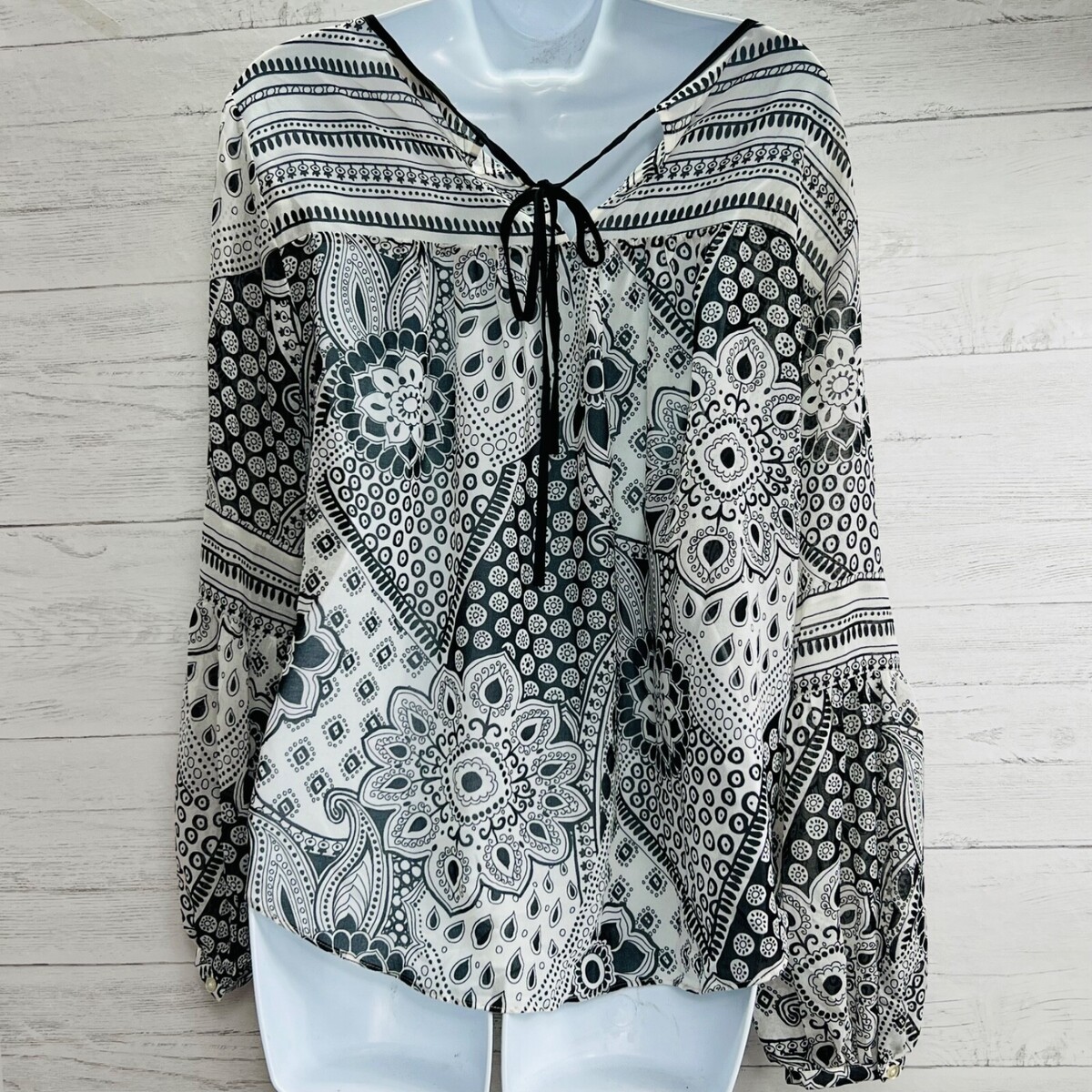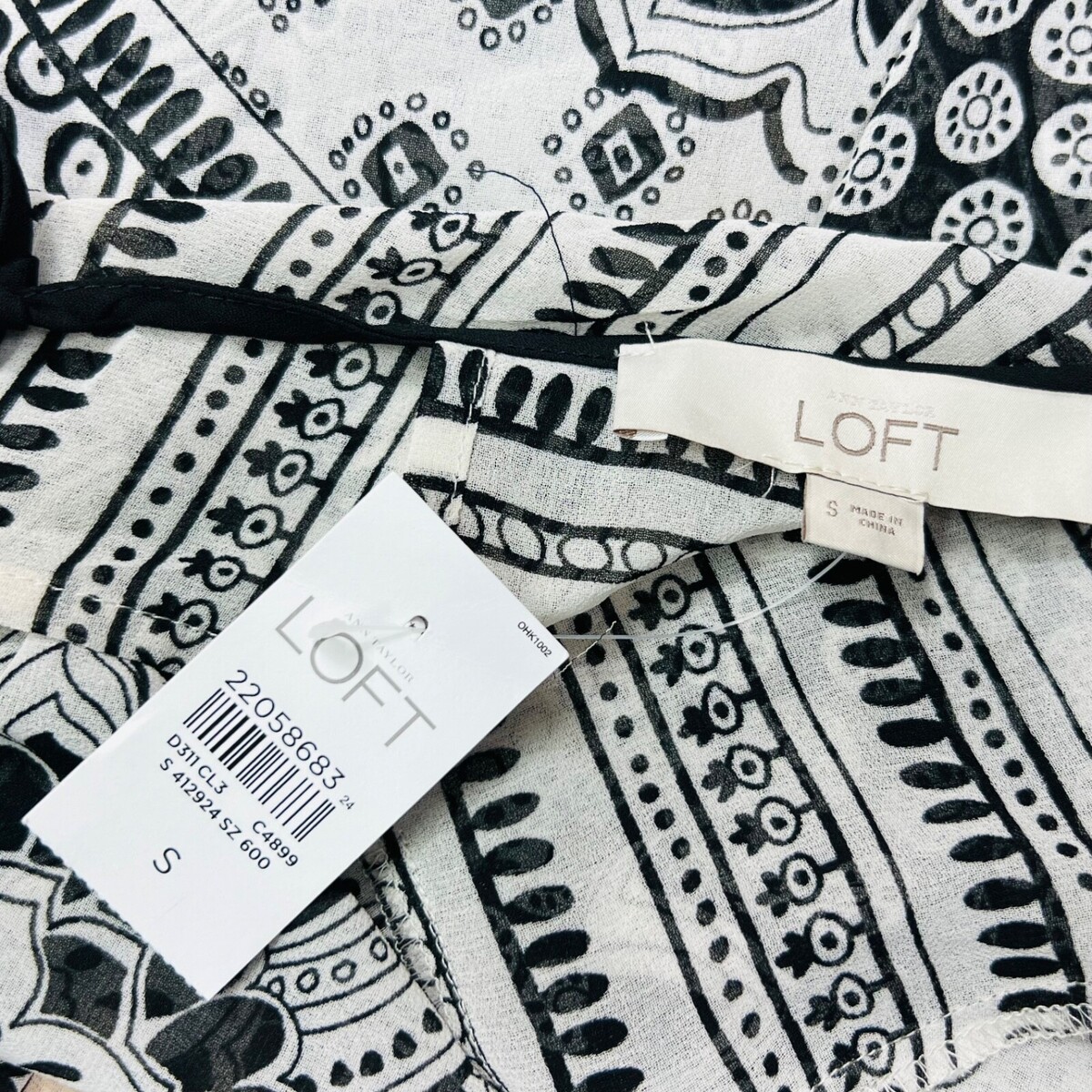 New Loft Women’s Size Small Floral Print Tie Back Black & White Top
