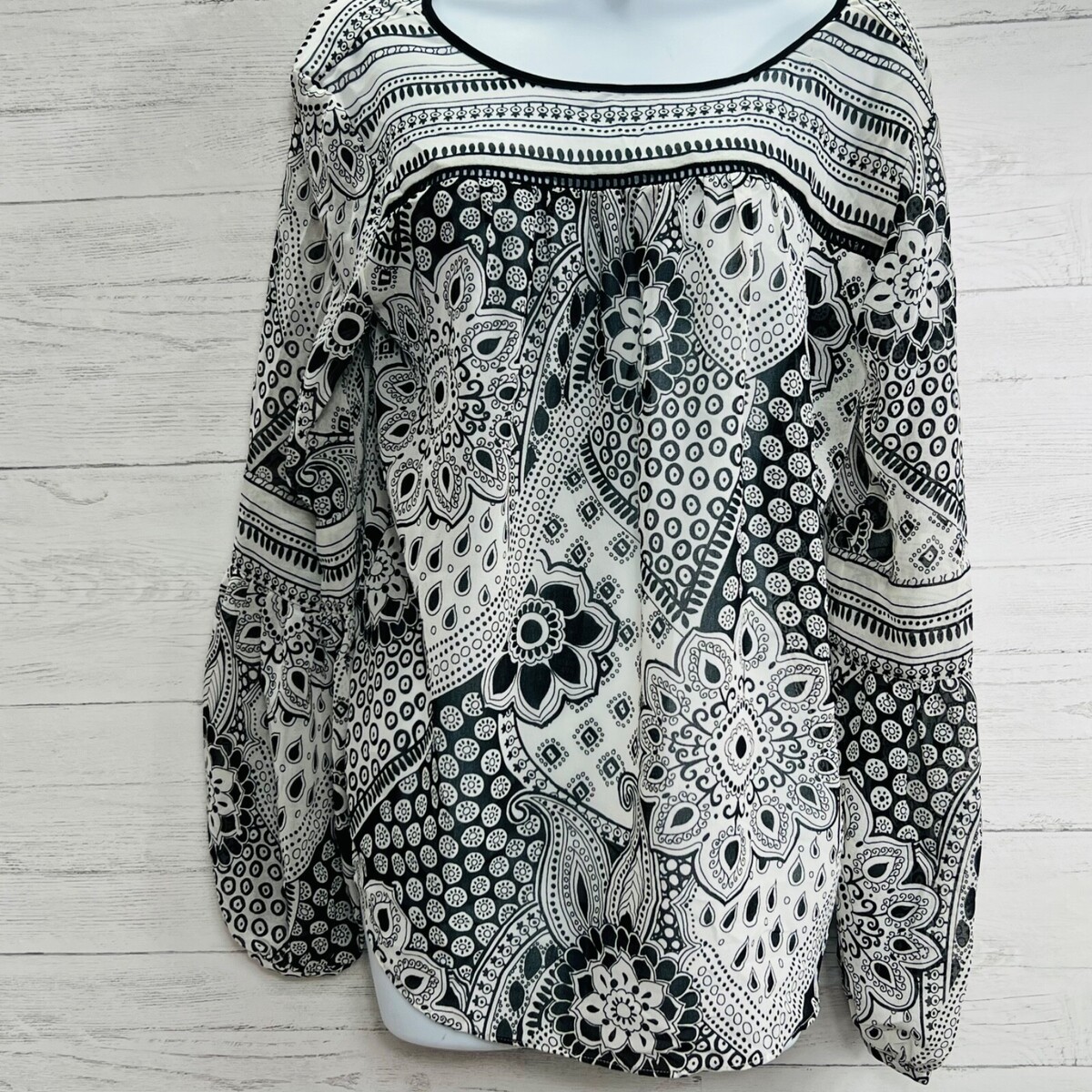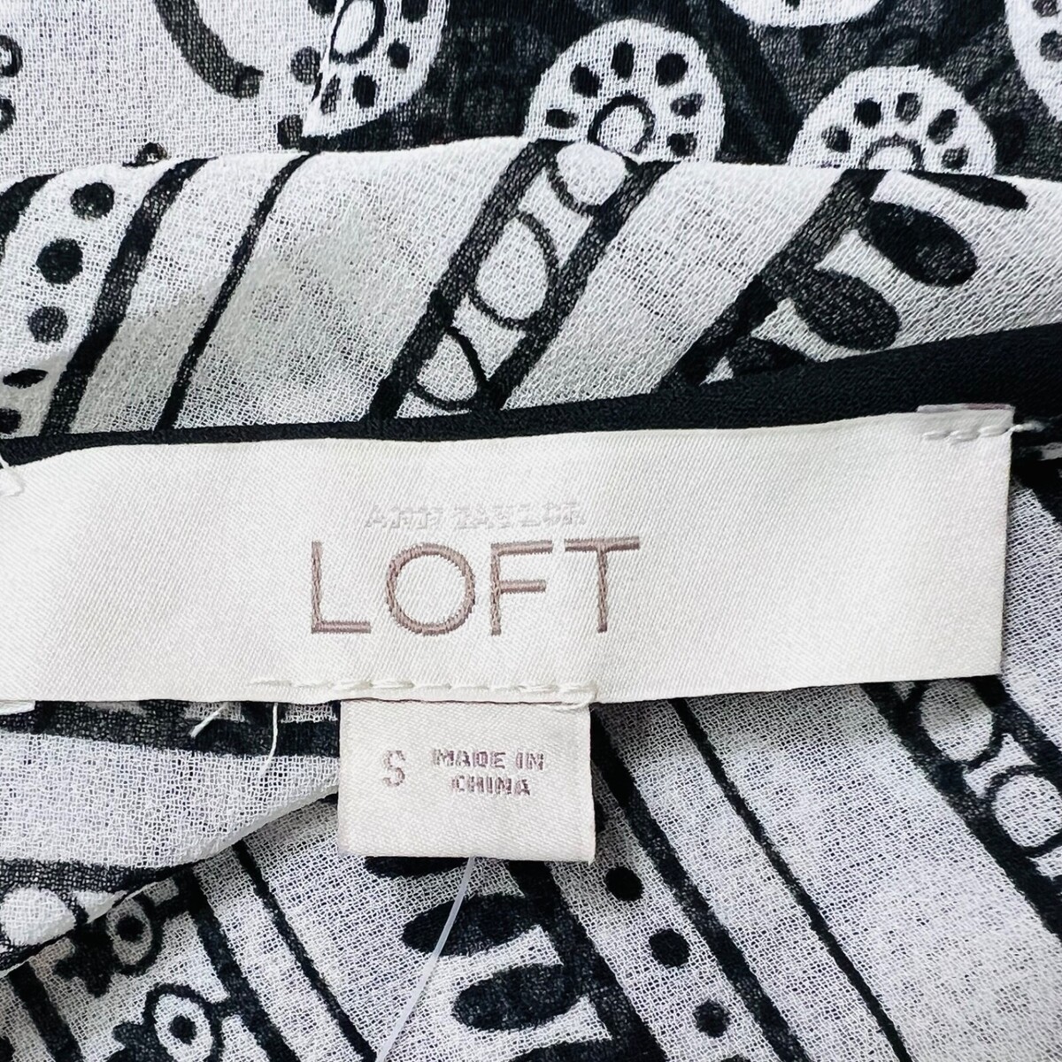 New Loft Women?s Size Small Floral Print Tie Back Black White Top