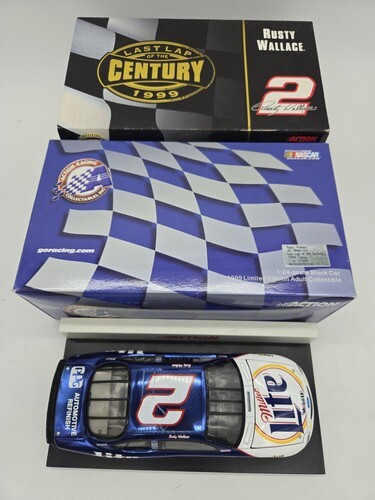 This 1:43 diecast car features the iconic #2 Ford Thunderbird driven by Rusty Wallace in the NASCAR races. The car is adorned with the recognizable MILLER Lite logo and the Race Image design. Fans of NASCAR and diecast car collectors alike will enjoy adding this piece to their collection. The car is a perfect representation of Wallace's skill and success on the racetrack, and the attention to detail in the design is impressive. This is a must-have for any fan of the sport or collector of diecast cars.