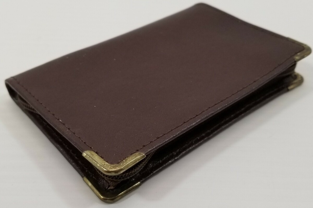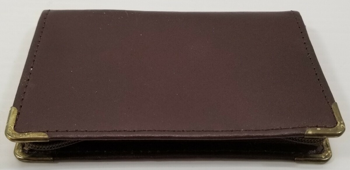 LL) Brown Faux Leather Zippered Credit Card Holder Wallet