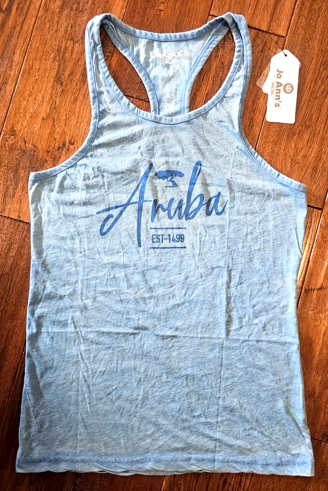 Runs Small - Aruba's One Happy Island Women's Tank Top Blue Joann's XL S4