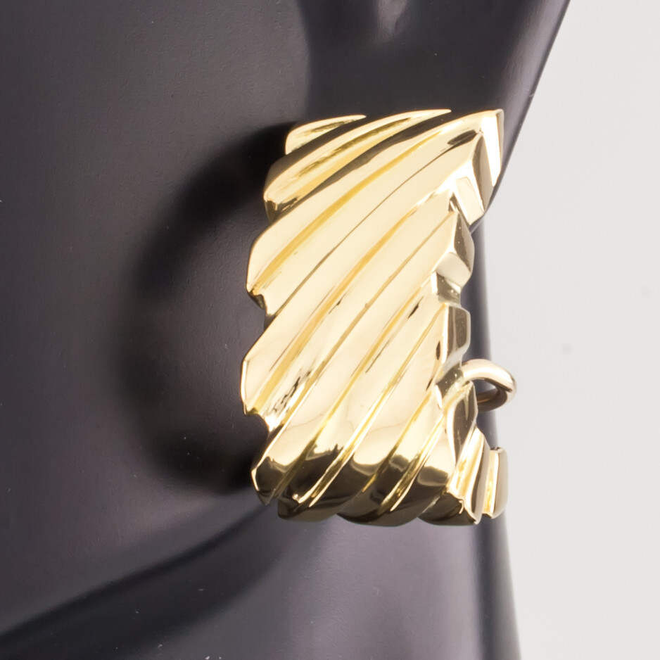 Gorgeous Huggie Earrings w/ Diagonal Stripe Motif