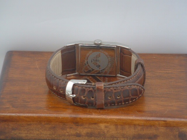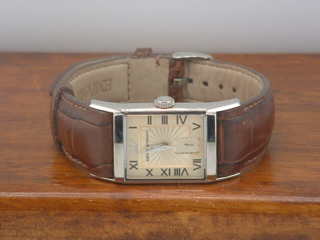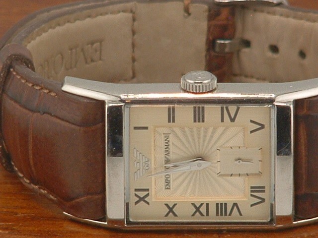 Pre-Owned Men?s Vintage Emporo Armani AR-0248 Leather Band Dress Watch-Stainless Steel Back -Stainless Steel Bezel -Quartz Movement-Leather Band-In Good Condition -Signs of Wear- Blemishes -Gold Brown Color-Fits 7 inch Wrist-Works!!!
