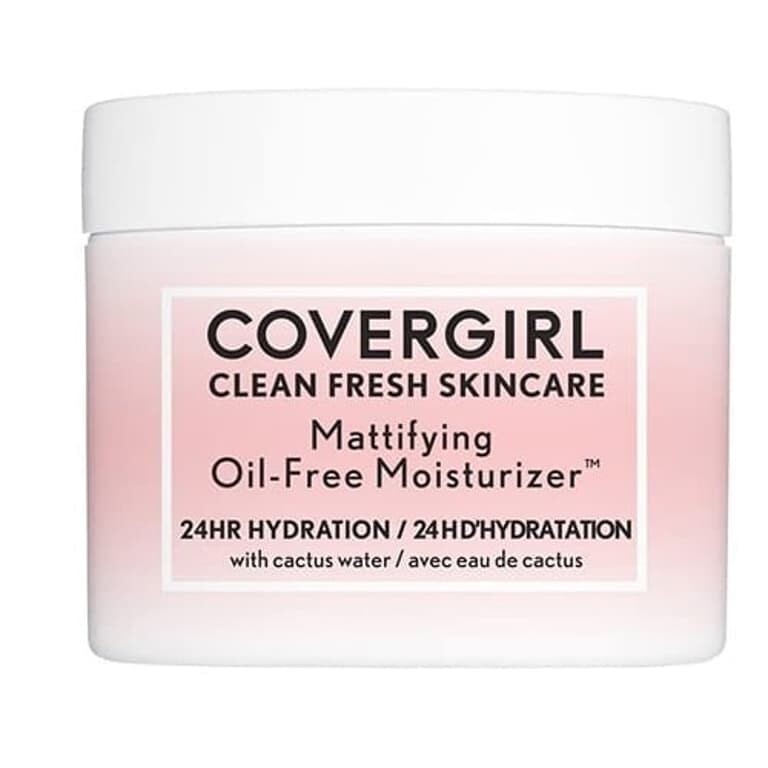 COVERGIRL?s Clean Fresh Skincare Oil-Free Moisturizer hydrates all day while mattifying controlling surface oil. Formulated with electrolyte rich TruClean cactus water to instantly lock in hydration, this lightweight, fast-absorbing formula leaves a soft matte finish without the shine.