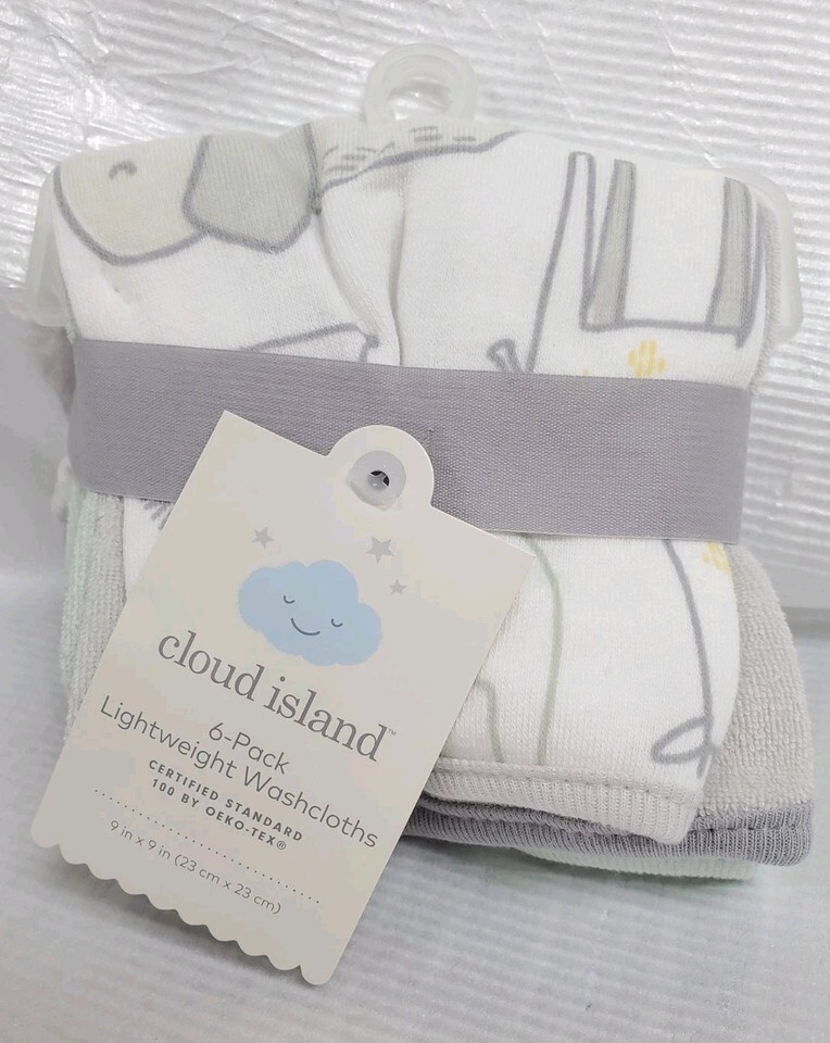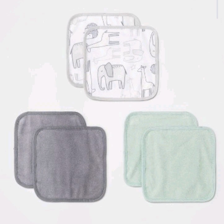 The Baby 6pk 'Little Peanut' Washcloth Set by Cloud Island? in Green is a unisex set of washcloths designed for baby grooming. With a fun jungle theme, these washcloths are perfect for keeping your little one clean and cozy during bath time. Made from soft and gentle materials, these washcloths are ideal for sensitive baby skin and are sure to be a hit in your nursery.