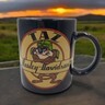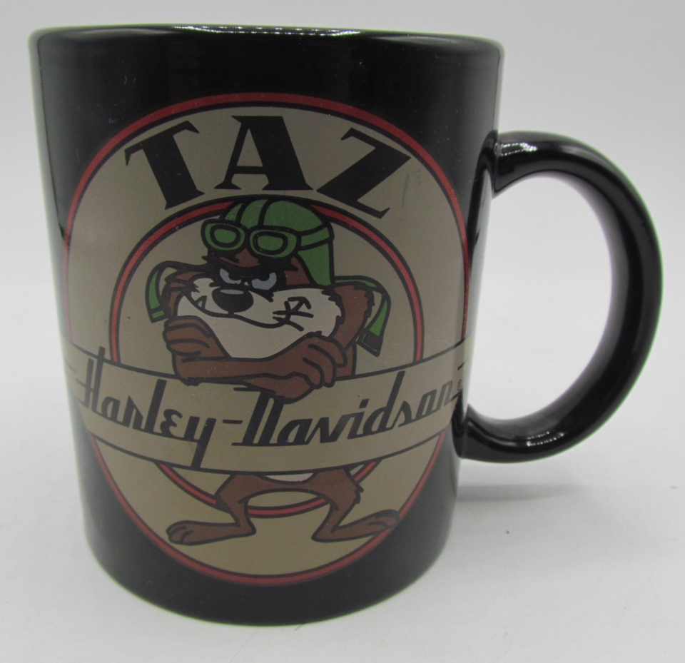 The Harley Davidson Taz Coffee Mug is a vintage collectible featuring the iconic Taz character from the Looney Tunes series by Warner Bros Inc. Released in 1991, this American legend showcases the partnership between Harley-Davidson and the popular cartoon. Made in China, this unique mug is a must-have for any motorcycle enthusiast or fan of classic animation, adding a touch of nostalgia to your daily cup of coffee.