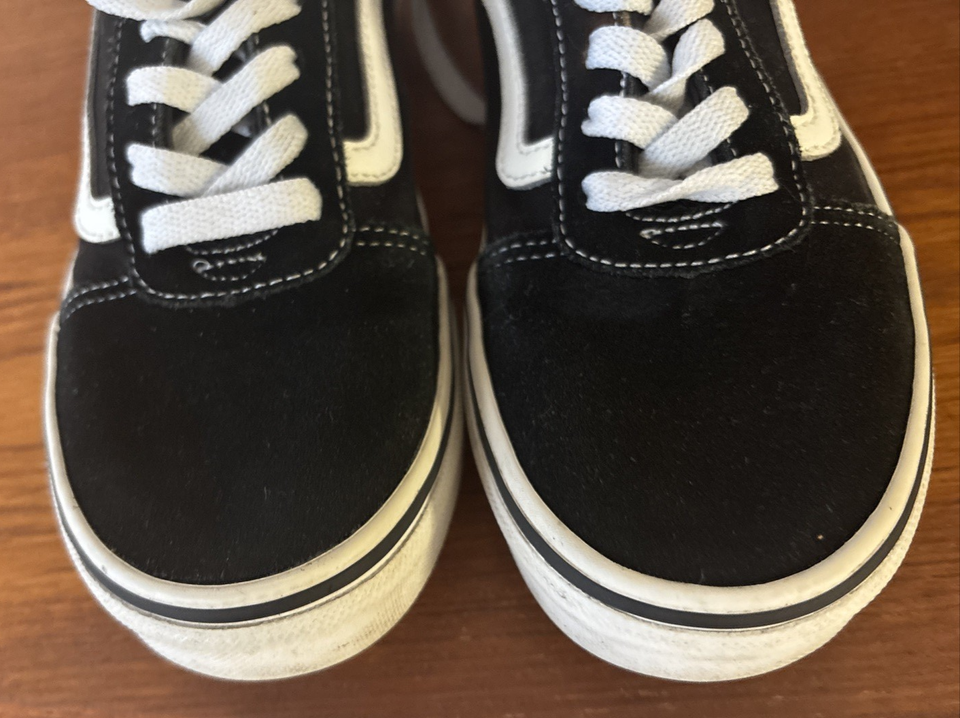 Up for bid is a pair of Vans Off Wall Black and White Youth Size 5.5 Low Top Lace Up Suede Toe and Heel. This is a pre-owned item and has some wear and signs of use as expected. Please see all photos before making a bid.