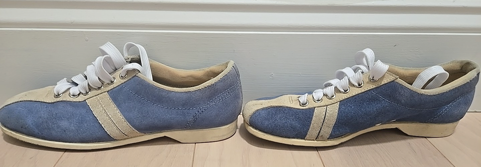 Vintage 1970s Hush Puppies Women's Blue Suede Bowling Shoes