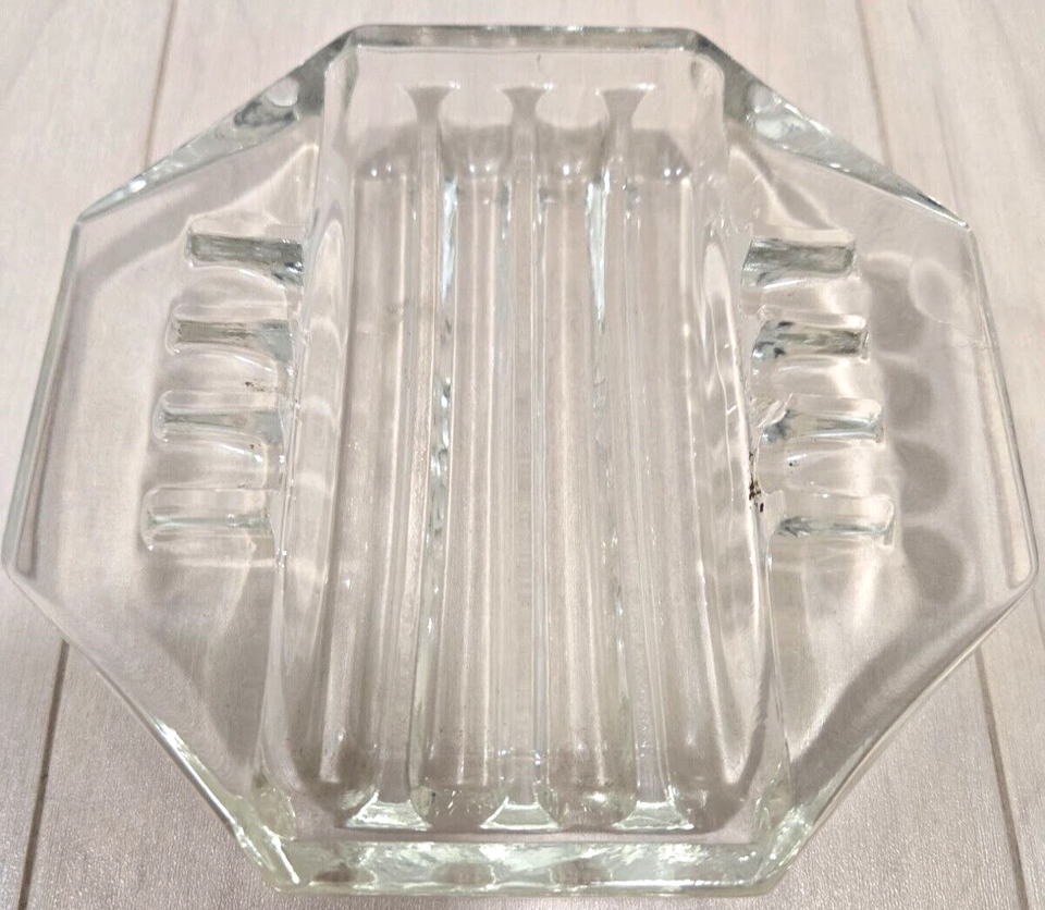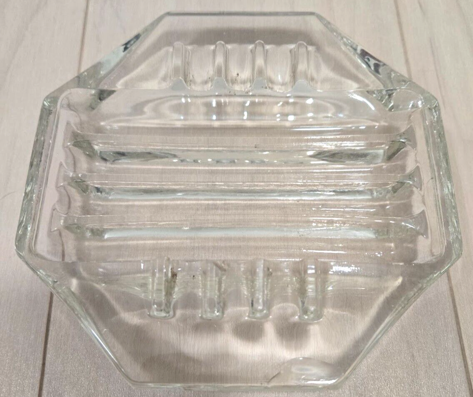 Vintage MCM Clear Glass Octagonal 5" x 5" Art Deco Ashtray