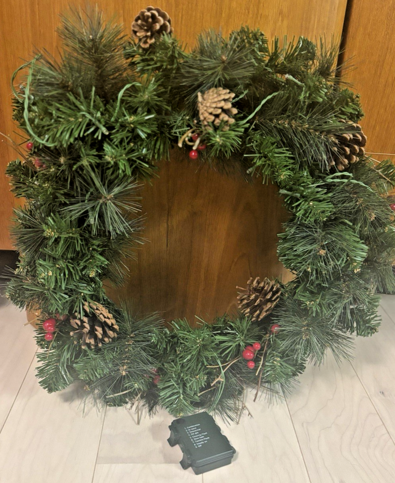 21" Artificial Christmas Wreath w/Pinecones and 9 different light settings