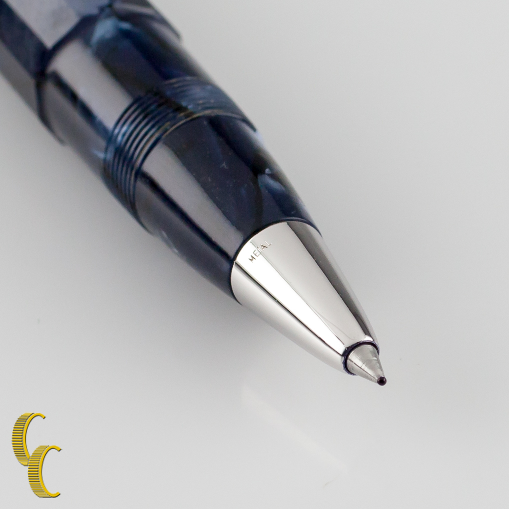 Omas Celluloid Paragon Blue Royale Rollerball Pen w/ Stainless Steel Cap