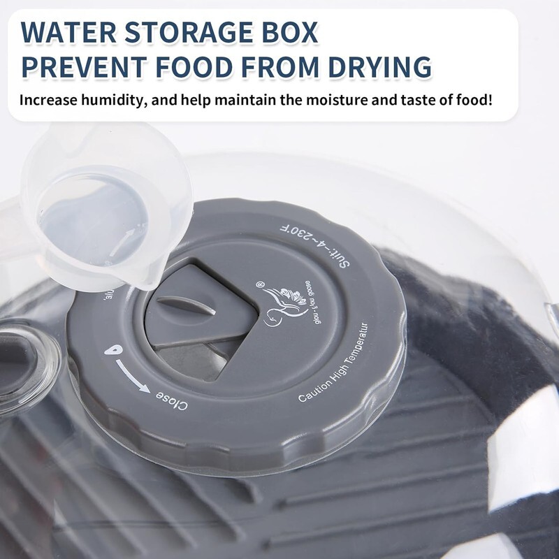 ?Overhead vent valve design?: An air outlet valve is designed on the top of the lid. When heating, the air outlet valve is opened to make the air flow and realize the heating faster. Usually used to cover dishes, close the air valve, so that the dishes are warm to avoid cold.