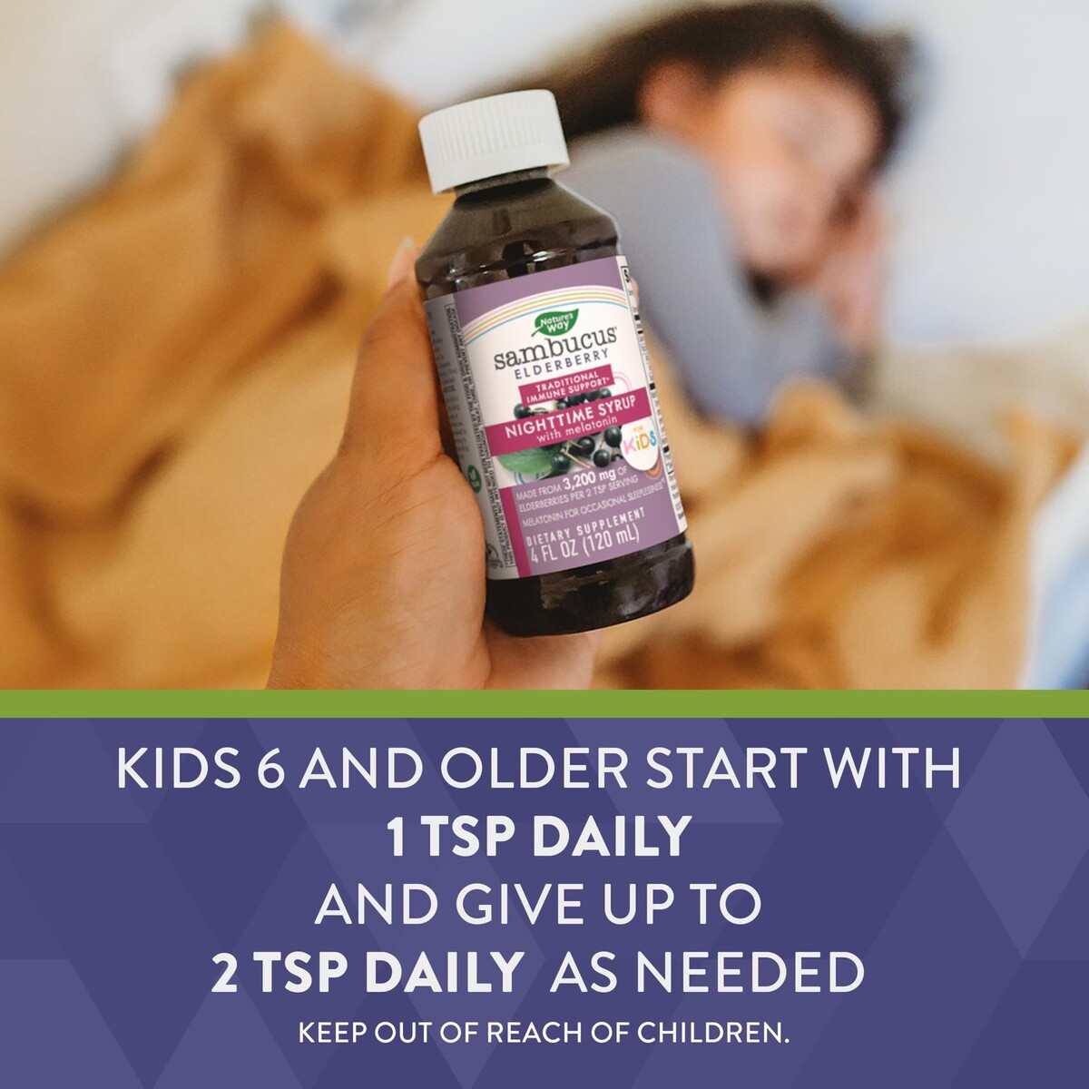 4/26 Nature's Way Sambucus Elderberry Nighttime Syrup w/ Melatonin, 4 Fl Oz