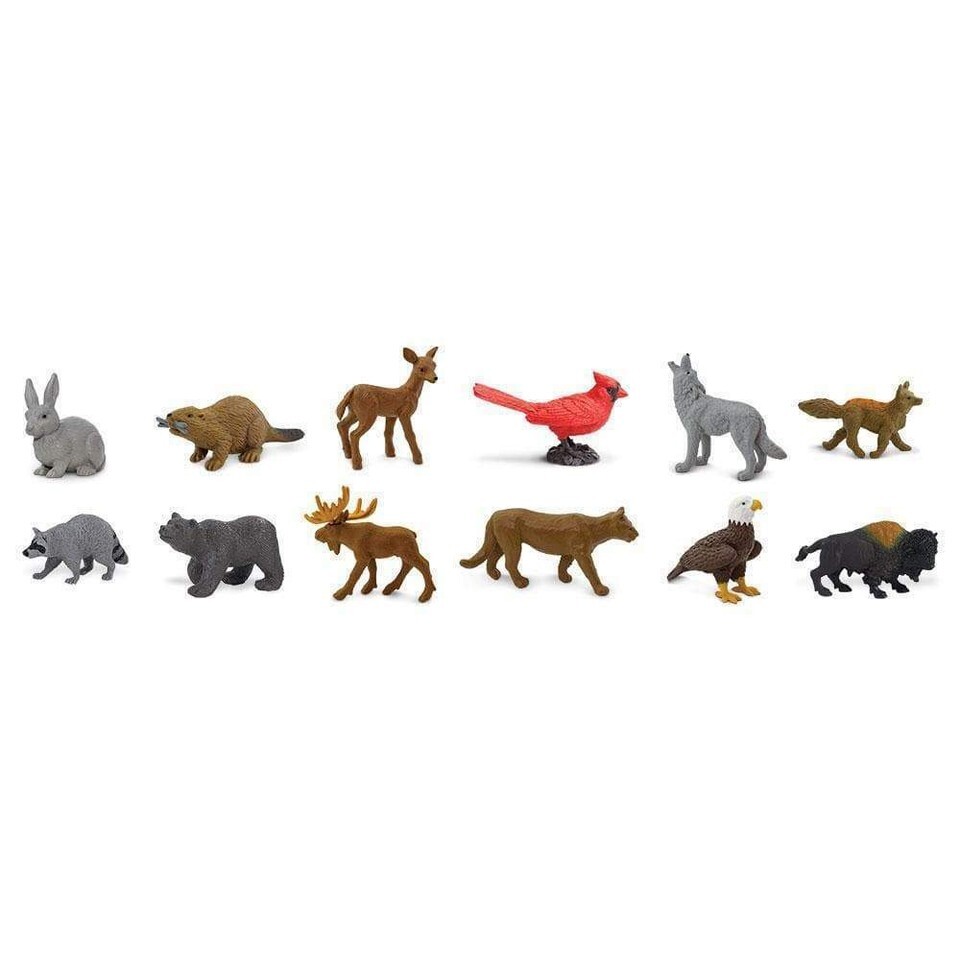 Bring the wonder of the great outdoors into your home with the Nature Toob! Including a rabbit, beaver, doe, cardinal, gray wolf, fox, raccoon, black bear, moose, mountain lion, bald eagle, and a bison, this Toob has all kinds of unique animals that fly, hop and saunter!