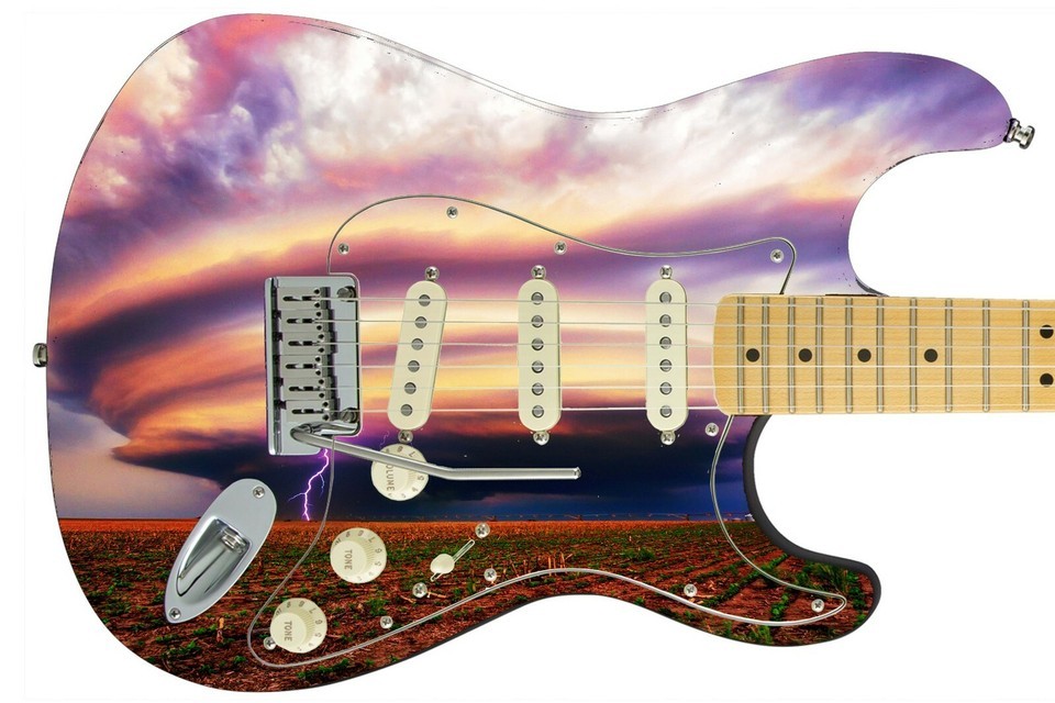 Guitar Skin Electric Axe Wrap Re-skin Pink Blue Cotton Candy Tornado 148