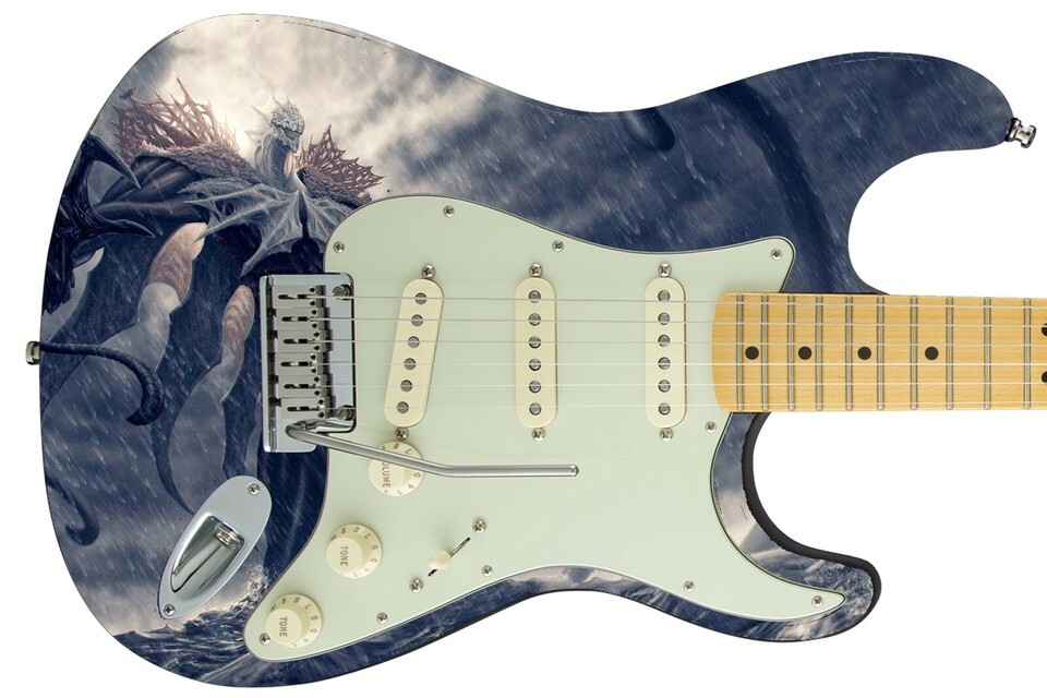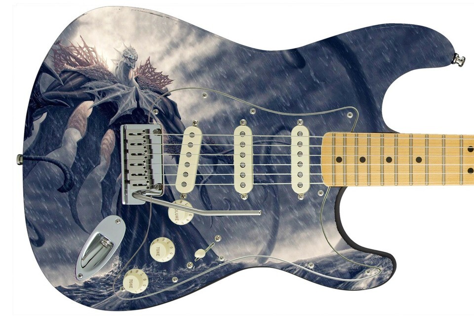 Guitar Skin Axe Wrap Re-skin Deep Blue Sea Monsters Decal Right Electric 265