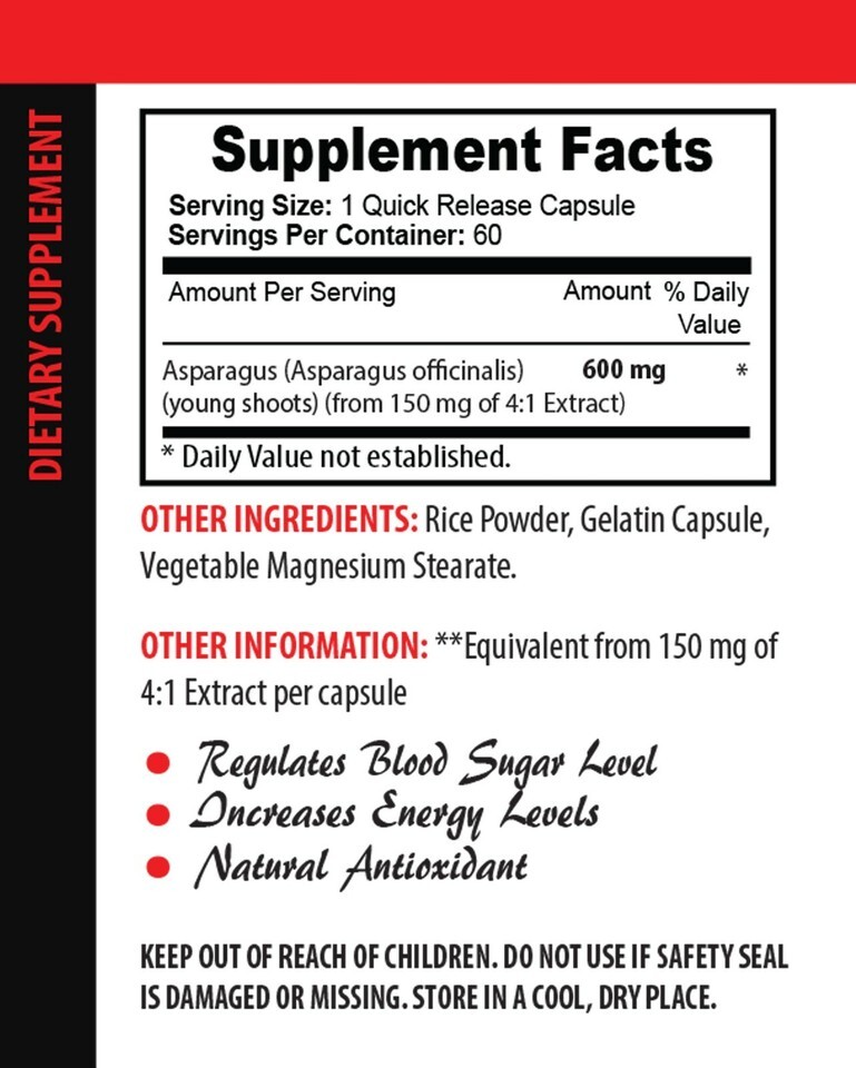 ASPARAGUS YOUNG SHOOTS: Asparagus will make your urine stink but after letting you know of the benfits that it brings you will forget all about the smell. This natural supplements uses young asparagus shoots to bring you regular blood sugar levels, supply antioxidants, boost your energy, imrpove your digestion, boost your brain function and more. Enjoy the benefits!