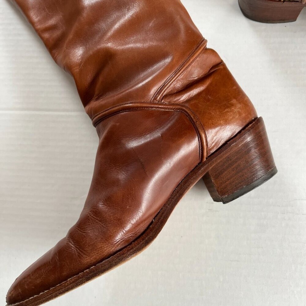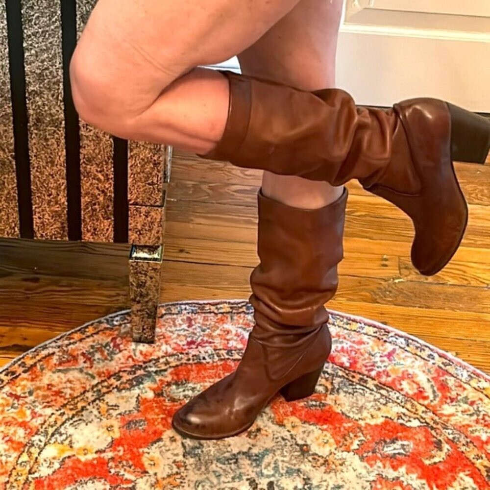 Joan n David Couture Sz 7 Scrunch Stage Slouch Brown Leather Mid Calf Boots